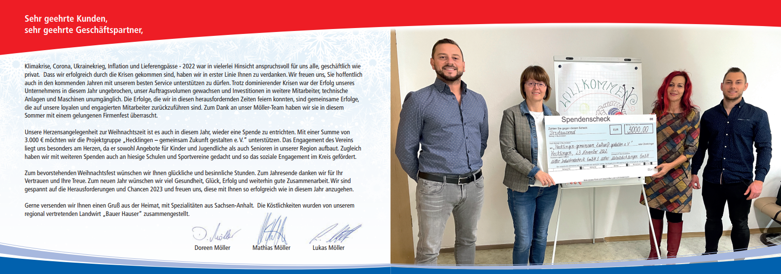 In diesem Jahr spendeten wir wieder für einen guten Zweck an die Projektgruppe „Hecklingen – gemeinsam Zukunft gestalten e.V.“
